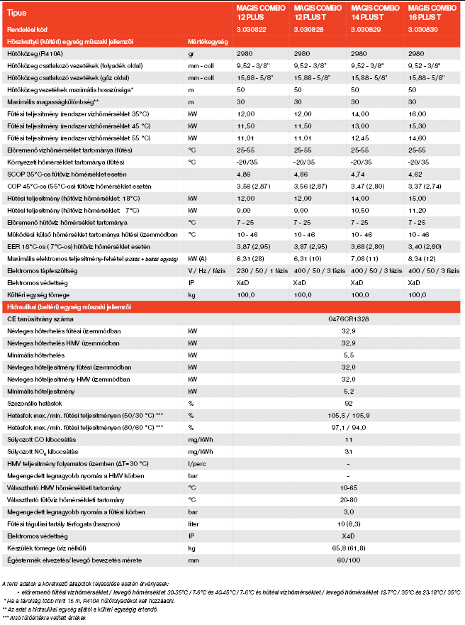 - MAGIS COMBO PLUS: tárolós kombi változat nagyobb meleg-víz igényhez. A beltéri egységhez indirekt HMV tároló csatlakoztatható. Ez a változat képes használati meleg vizet és fűtést vagy hűtést is biztosítani egy időben.