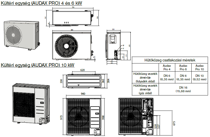 - elzárószelepek az R32 hűtőkörre gyári tartozékként