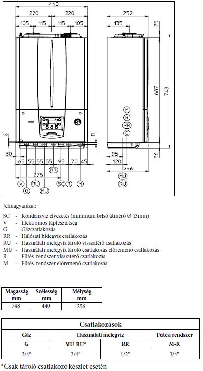 - 748 / 440 / 256 Méret (mag/szél/mély)