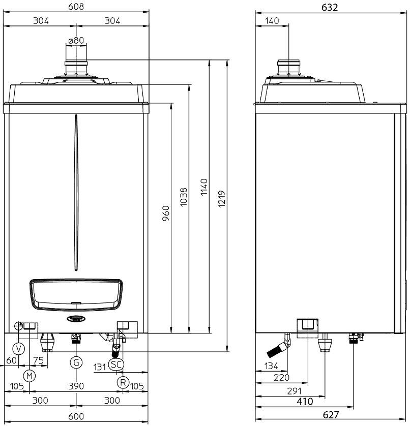 - 1038 / 600 / 627 Méret (mag/szél/mély)